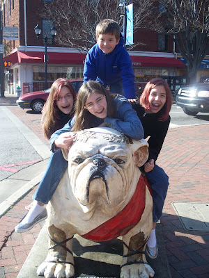 While we were in GA, we went all around town looking for the bulldog statues. Each statue represents some facet of GA life. I hope you enjoy looking at the pictures as much as we enjoyed finding the bulldogs. There is a website that tells a bit about the project, if you want to check it out.