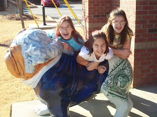 Butterfly is acting good, and for that I am thankful. FigNewTon has had a great attitude for the last few days, and for that I am thankful. We are all healthy, and for that I am thankful. We are having fun, and for that I am thankful. I have been able to enjoy many visits with Jackie, and for that I am thankful. We enjoyed baking cookies, and for that I am thankful. Jackie took us to lunch the other day, and for that I am thankful. I have been able to spend time with Stephanie and her family, and for that I am thankful. We were able to enjoy warmth, sunshine, and a picnic today, and for that I am thankful. The girls have had several days in this last week to have a girls day out with Taylor, and for that I am thankful. We were able to find most of the bulldog statues, and for that I am thankful. I have a camera to record the memories, and for that I am thankful. God has breathed fresh life into me these last few weeks, and for that I am thankful. I feel refreshed and ready to handle the stress of life again, and for that I am thankful. God gives grace to cover my insufficiencies, and for that I am thankful. I am on my way to see Autumn and her family, and for that I am thankful. I have an abundance of friends, and for that I am thankful. I have a home to return to, and for that I am thankful.