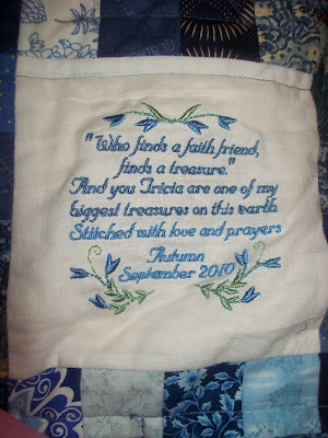 - I am thankful for friends. Like Autumn who made me a beautiful quilt and is going to take care of my girls while I recover. Like Liz who is taking me to the hospital and cleans the church for me regularly right now even though it is more than she should be doing. Like Natalie who is planning to bring me home from the hospital. And all the friends at church and co-op and far away who have let me know they care and are praying for me.
