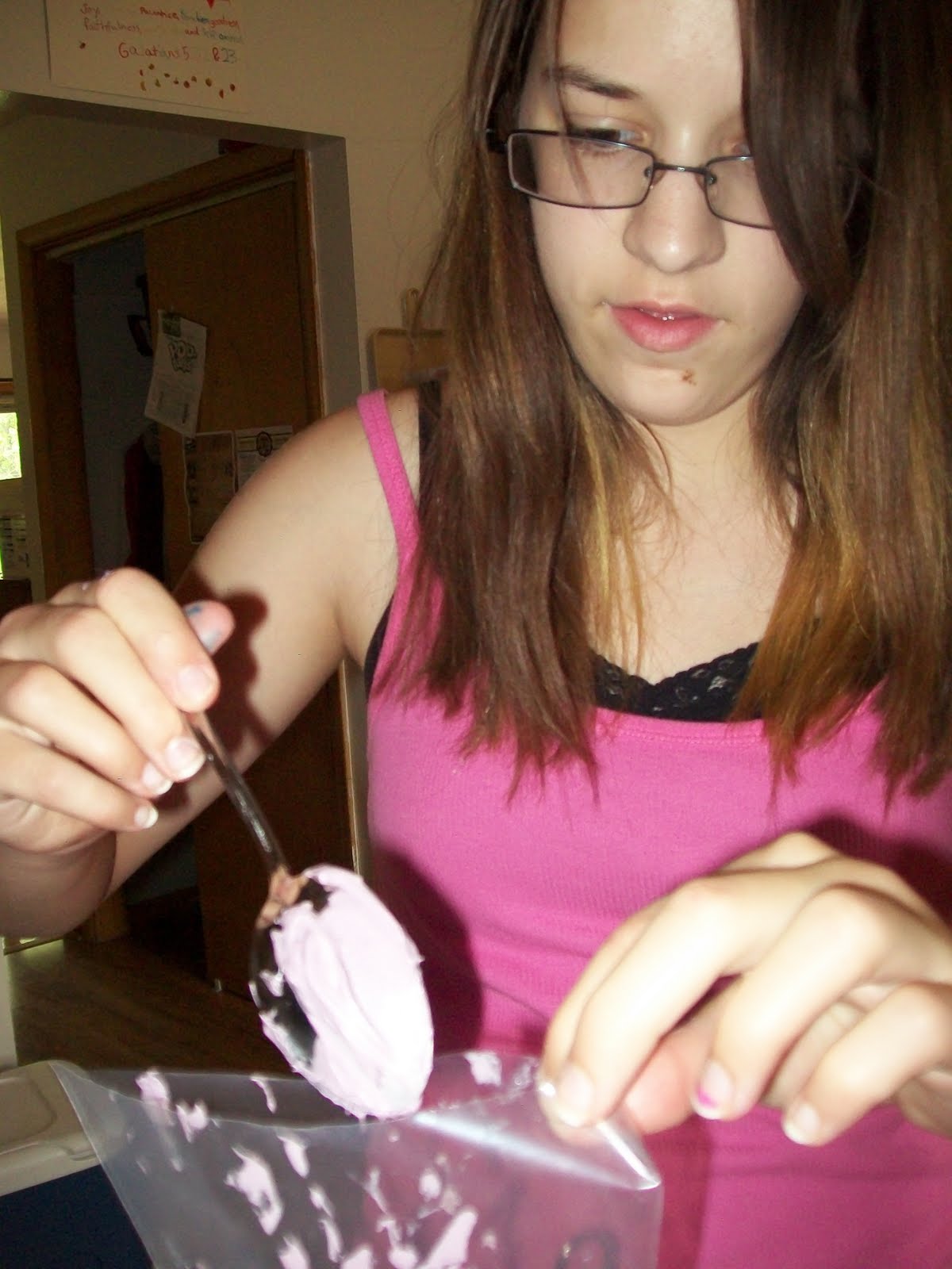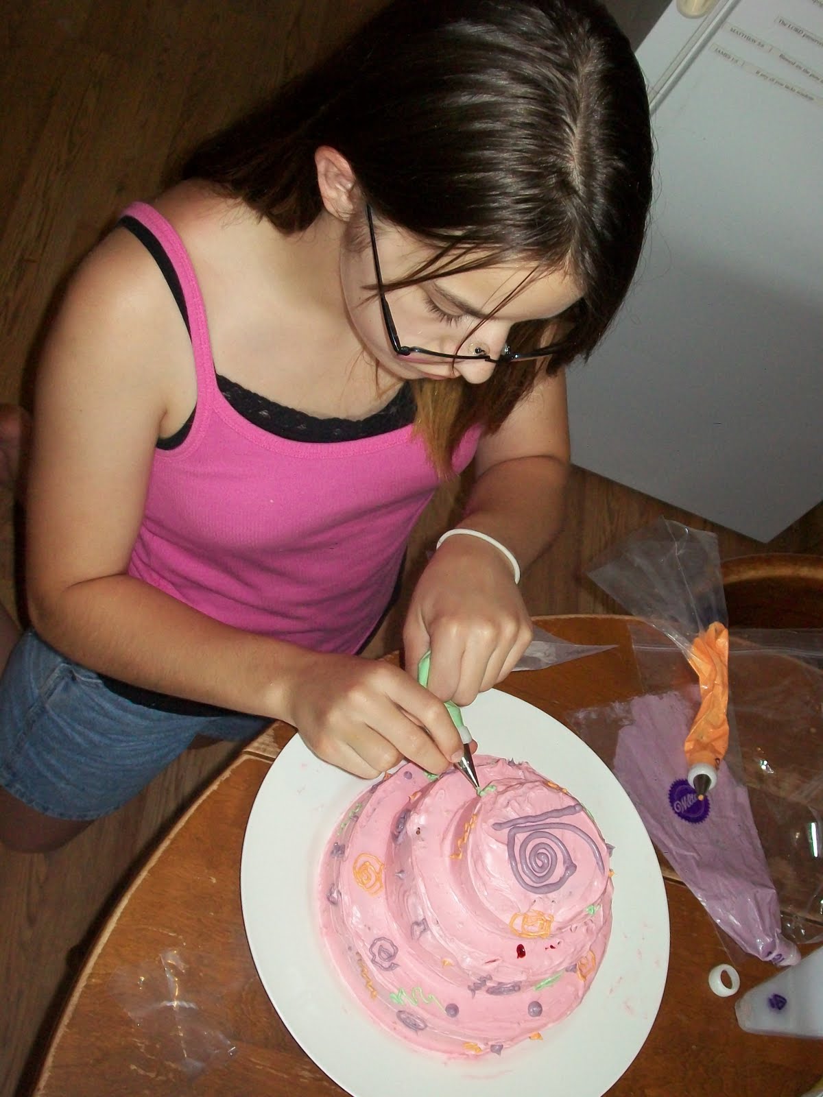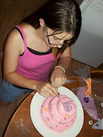 Butterfly is experimenting with the idea of becoming a cake decorator. Here are photos of her first cake and the decorating process.