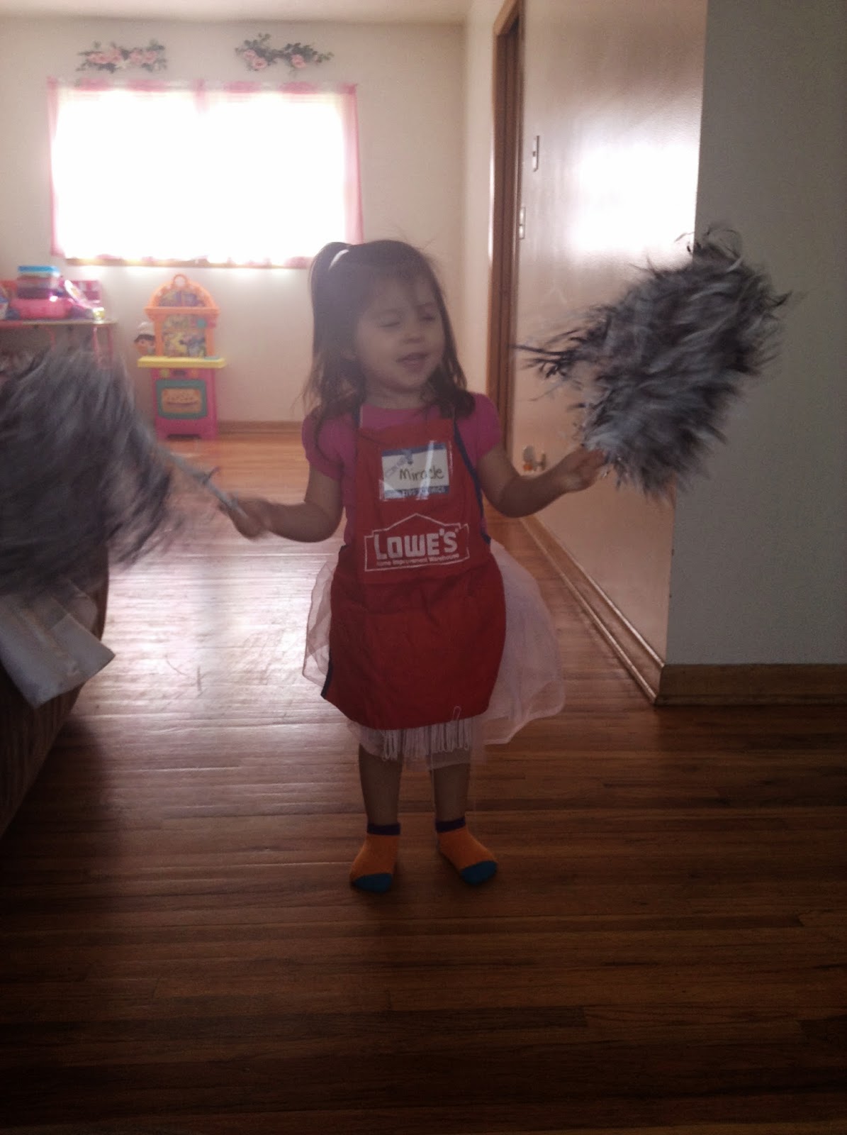 Miracle's home.(#462) Angelica went to pick her up before watching the girls this afternoon. (#463) The plan was for Miracle to stay upstairs and get some things done while Angelica babysat. Busy Bee would have none of it. Busy Bee wouldn't let Miracle out of her sight. She was so excited to see her. (#464) So Miracle babysat the girls today and Angelica came upstairs.