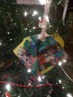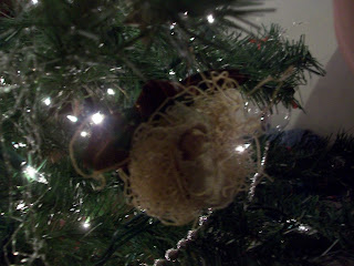 Again, not the greatest picture.  Have you ever tried to get a picture of an ornament?  Butterfly wrote a letter to Santa when she was six; "An ordament about Jesus birth" was top of her list.