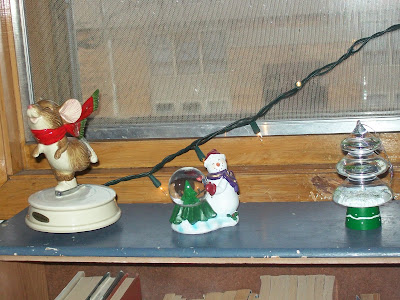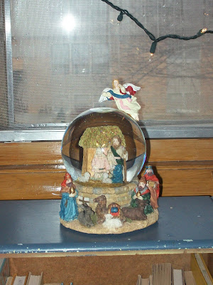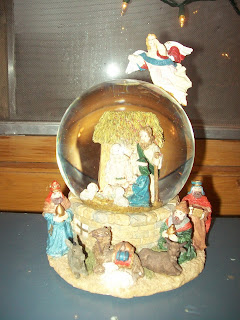 This was one of my first Christmas decorations.  The second year we lived in NE, a friend gave this to me as a Christmas gift.  It is a snow globe and a music box.