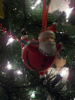 I bought this one early January 2008 at a gas station between my Grandma's house and home.  I got it for pennies because although you cannot tell, it is broken.  She was missing the bow on her head and I made one from beads that I glued on and she was supposed to have a mirror glued under her foot.  Try as I might, I couldn't get anything that I glued there to stick.  This ornament is one of my favorites anyway simply because it was perfect for FigNewTon.