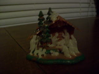 This one is tiny enough that I can hold it in my hand.  I think that is part of what has always fascinated me about it, because each piece shows intricate workmanship.  The figures glow in the dark.  I can remember begging Grandma to let me sleep in the living room so that I could look at this after the lights went out.  Unless we had company that was sleeping in my room, she would only let me sleep in the living room three times each Christmas; the day the decorations went up, Christmas night, and the day the decorations went down.  The last time we visited Grandma, she sent this home with me.  So for the last several Christmas seasons, it has sat on the dresser in my room.
